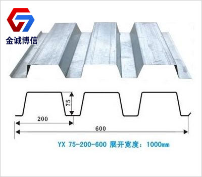 600型楼承板(钢承板,建筑压型钢板)是采用镀锌钢板经辊压冷弯成型,其截面成V型,U型,梯形或类似这几种形状的波形,主要用作较久性模板,也可被选为其他用途。